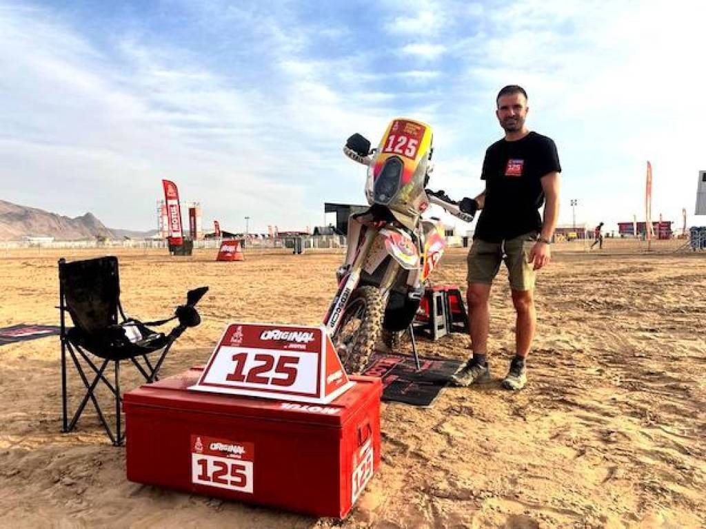 J’ai tout de suite adoré, même si au début, il y a tout de même un peu cette peur de ne pas être sur le bon chemin. Mais cette solitude, c’est un défi à soi-même et j’aime vraiment ça. » Il lui faudra pourtant patienter quatre ans avant de reposer ses roues dans le désert. Le rallye-raid coûte cher. Alors en attendant de pouvoir remettre le couvert, Damien assouvie sa passion de la compétition en motocross et en enduro. Adepte de la course à pied, il repousse aussi ses limites dans des trails et ultra-trails. Et puis en octobre 2023, il s’engage à nouveau au Maroc avant d’enchaîner sur le rallye d’Abou Dhabi en février de l’année suivante. Il envoie dans la foulée sa candidature pour le Dakar. Elle est validée en juillet. « A partir de là, je n’avais plus le choix, il fallait y aller », s’amuse-t-il. Préparer un Dakar, c’est aussi chercher des partenaires pour financer sa participation. Damien sollicite ceux qui l’aident déjà pour ses courses de motocross et d’enduro.
