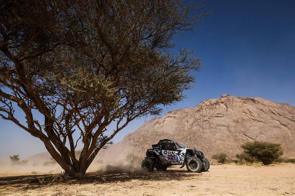 En prenant la direction sud au départ de Bisha, l’altimètre grimpe légèrement pour flirter avec les 1300 mètres. Pas de quoi manquer d’oxygène, mais le paysage se transforme légèrement tout de même. À la mi-parcours, il s’agissait surtout de se repérer entre les canyons à explorer et les montées sur des hauts-plateaux mi-sablonneux, mi-pierreux ! Sur une belle distance de 412 km où il a fallu garder sa concentration et jouer dans la poussière, le solide Australien Daniel Sanders s’est à nouveau imposé. Les buissons ont encore joué des tours à certains, mais absolument pas à Seth Quintero, vainqueur en autos à 22 ans, une performance historique. La stratégie des autres favoris a consisté à soigner leur position de départ pour le défi de la 48h chrono.