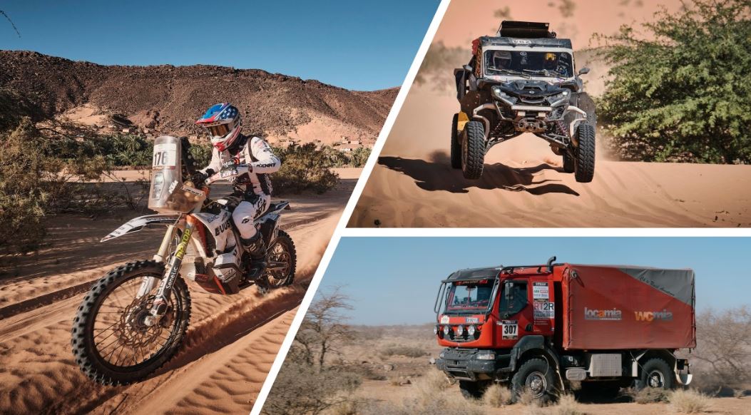 L’Africa Eco Race proposait aujourd’hui une étape en boucle autour d’Aïdzidine, longue de 490 kilomètres, dont 415 kilomètres de spéciale chronométrée. Une boucle dense et variée, alternant sable et pierres, passages d’oued et secteurs cassants, avant un retour au sable et aux dunes.